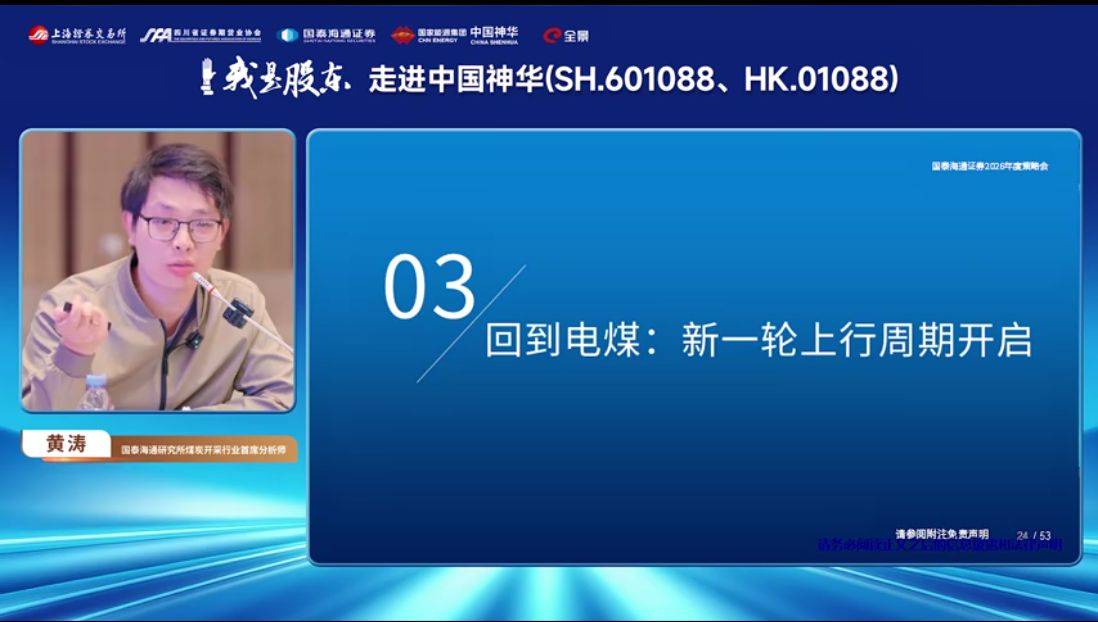 日前,“不变器的力量——看望神华电力的区位劣势和保障”2025年秋季反向演勾当成功举办。做为上海证券买卖所“我是股东”走进沪市上市公司系列勾当之一,本次勾当由上海证券买卖所、四川省证券期货业协会指点,中国神华能源股份无限公司、国泰海通证券股份无限公司从办,全景投资者教育上海协办。