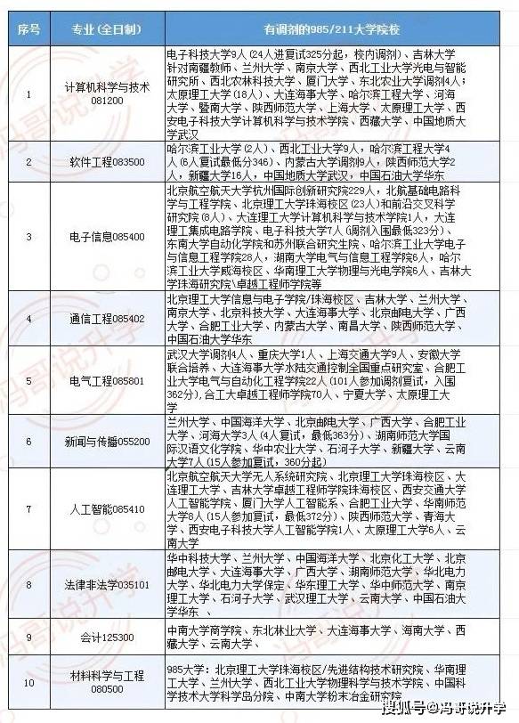 做为统考抢手专业,大多考11408,益处是考生备考内容同一,一意愿未上岸后调剂机遇多,但想调剂进985难度拉满,可选院校少少: